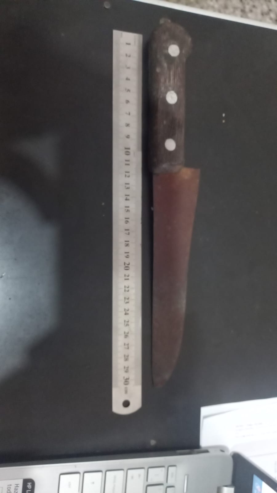 Tras recibir el alerta, el Grupo Motorizado del Comando de Patrullas organizó un operativo cerrojo por los alrededores. En poco tiempo, los efectivos lograron interceptar al sospechoso en la esquina de 9 y 157. Al revisarlo delante de un testigo, la policía encontró que llevaba escondido entre su ropa un cuchillo de unos 30 centímetros con mango de madera.
