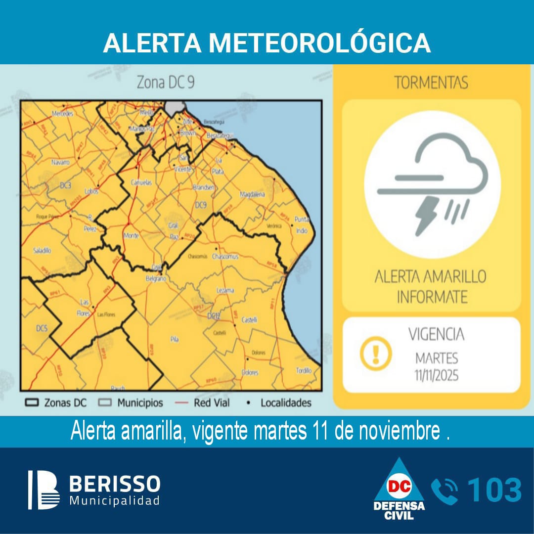 La región ha sido colocado en Alerta Amarilla ante la previsión de un evento meteorológico que se desarrollará durante la tarde y noche. Se espera que el municipio sea afectado por un sistema de lluvias y tormentas de variada intensidad, con algunos focos que podrían alcanzar fuerza localmente fuerte.