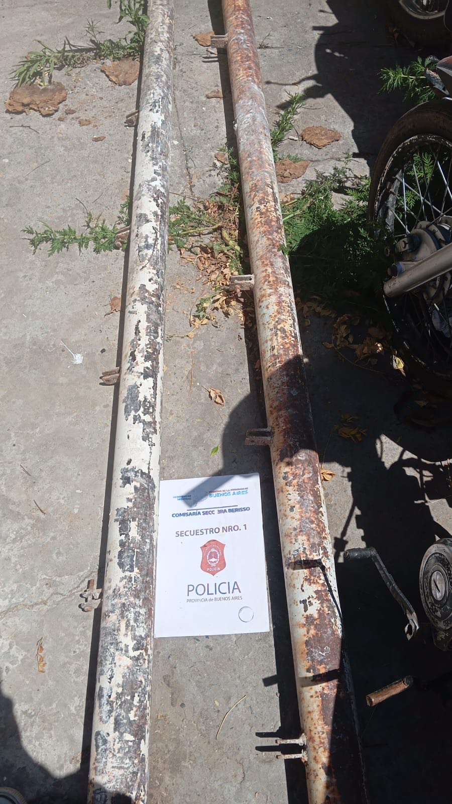 Los involucrados fueron identificados, ambos domiciliados en Berisso. En el procedimiento se procedió al secuestro de dos caños metálicos de aproximadamente cuatro metros de largo cada uno, y el traslado de los hombres a la *Comisaría Tercera de Berisso* para continuar con las actuaciones correspondientes.