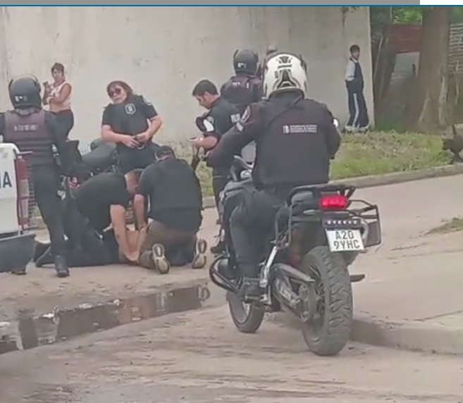 La primera intervención, capturada en video por un frentista, se centró en la aprehensión de un joven identificado por los vecinos como «Tomy». Según los reportes vecinales, esta detención en plena vía pública se produjo luego de que «Tomy» habría robado a una vecina horas antes. Las imágenes muestran a varios efectivos policiales reduciendo a una persona junto a una camioneta patrulla, con la presencia de motocicletas de la fuerza de seguridad y varios curiosos observando la escena.