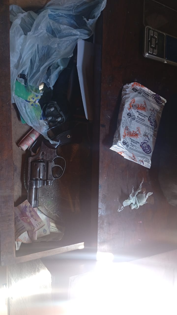 Durante el operativo, los efectivos policiales incautaron un importante material: cuatro «facas tumberas», un revólver calibre .32 marca Italo, una balanza de precisión con 3,9 gramos de cocaína y un teléfono celular.