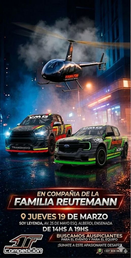 Se invita a toda la comunidad y a potenciales auspiciantes que quieran sumarse a este apasionante desafío a acercarse a Soy Leyenda, en Avenida 25 de Mayo esquina Alberdi, Ensenada, para ser parte de este lanzamiento que posiciona a la región en el mapa grande del automovilismo argentino.