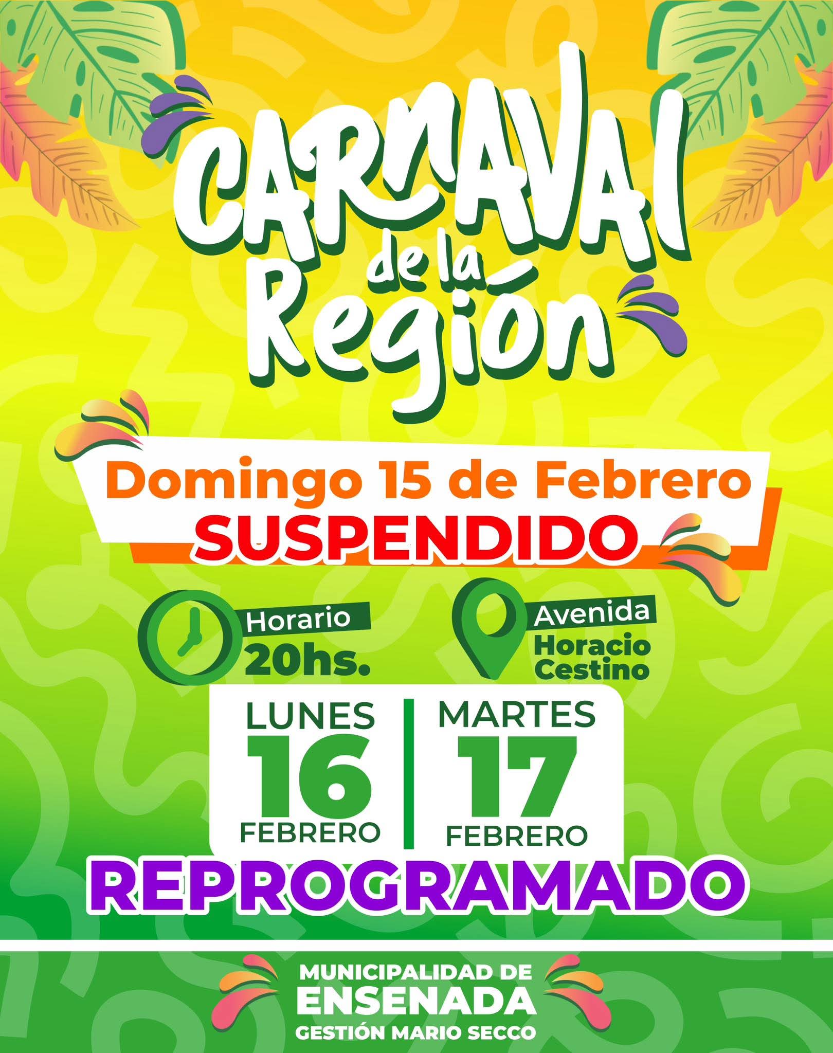 Debido a las condiciones climáticas adversas que afectan a la zona, la organización del Carnaval de la Región ha tomado la decisión de suspender la jornada prevista para este domingo 15 de febrero. Con el objetivo de garantizar la seguridad de los asistentes y el lucimiento de las comparsas, el cronograma oficial ha sido modificado y se extenderá hasta el martes inclusive.