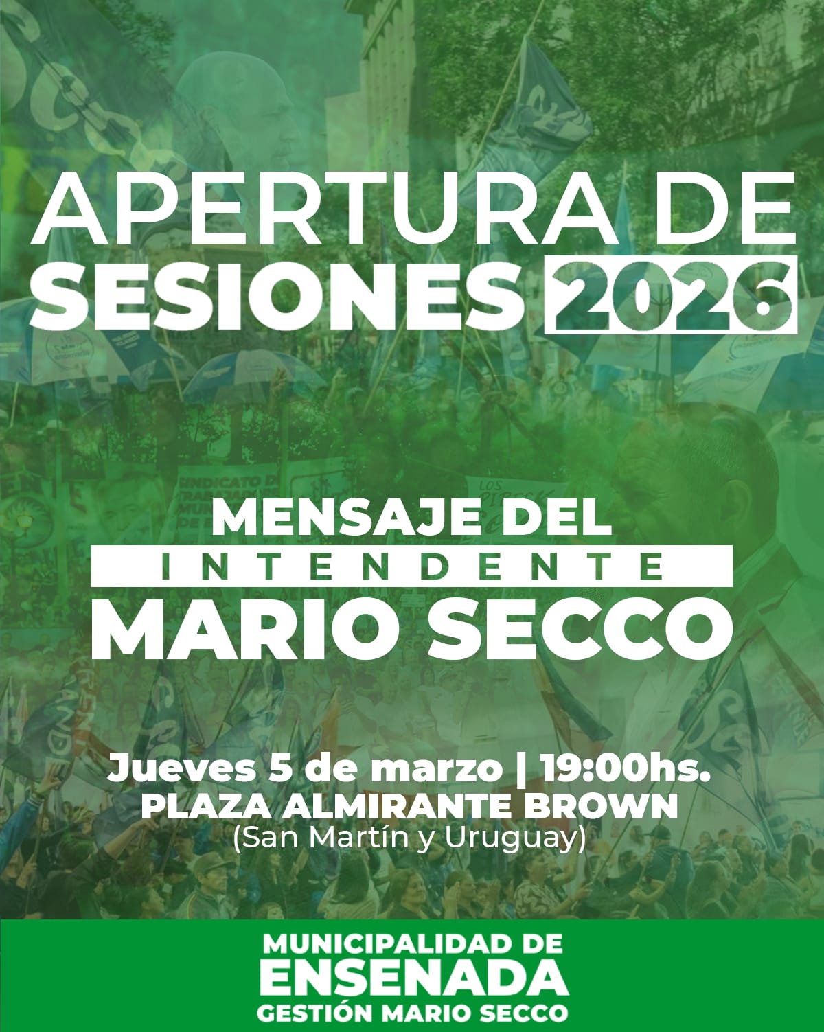El evento se realizará en la plaza Almirante Brown de calle San Martín y Uruguay, desde las 19hs. Durante el acto, el Intendente Mario Secco brindará el discurso inaugural del período legislativo municipal donde hará un repaso de todo lo trabajado hasta el momento en su gestión y los numerosos proyectos que se concretarán durante a corto, mediano y largo plazo.