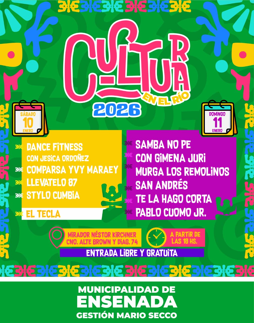El domingo 11 la fiesta sigue desde temprano con Samba No Pe, la murga Los Remolinos y las presentaciones de San Andrés y Te La Hago Corta. El broche de oro del fin de semana quedará en manos de Pablo Cuomo Jr., asegurando una tarde ideal para disfrutar en familia o con amigos junto al río.