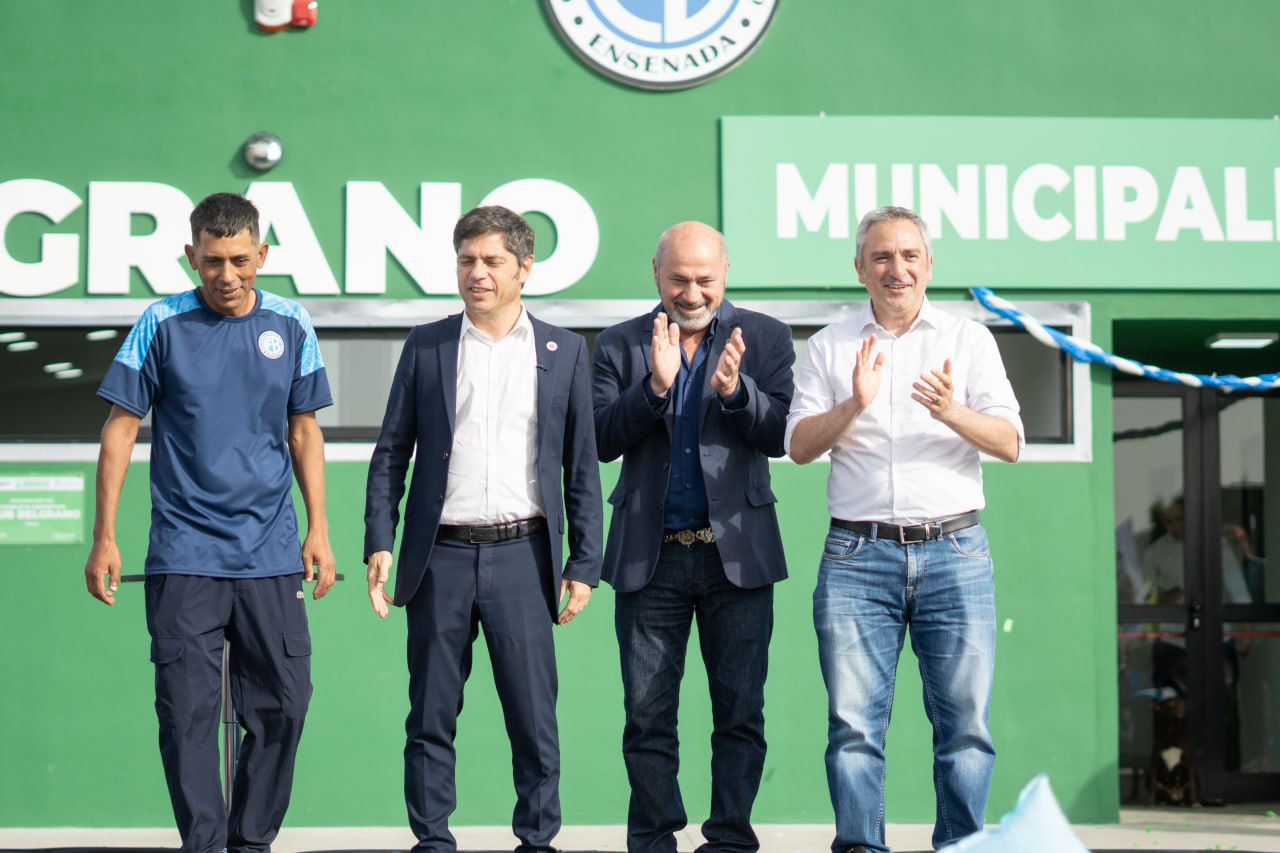 En una tarde muy emotiva para las y los ensenadenses, el Gobernador Axel Kicillof visitó la ciudad para inaugurar junto al Intendente Mario Secco y al Ministro de Desarrollo de la Comunidad Andrés Larroque dos obras muy importantes para el distrito: el nuevo edificio de la Secretaría de Inspección y Control Urbano y el Complejo Deportivo para el Centro Fomento General Belgrano.