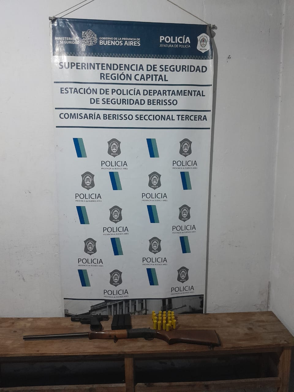Como resultado de la diligencia, se procedió a la aprehensión de un hombre de 43 años, identificado como Gerez. Asimismo, las fuerzas de seguridad lograron incautar una pistola semiautomática Glock 9 mm Parabellum con tres cargadores y un total de 19 municiones, además de una escopeta calibre 20/70 marca Harrington & Richardson y 21 cartuchos del mismo calibre.