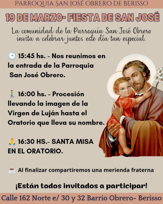 Este jueves 19 de marzo, la comunidad católica de Berisso se vestirá de fiesta para honrar a San José. La Parroquia San José Obrero, ubicada en el Barrio Obrero, ha organizado una serie de actividades religiosas y comunitarias que se extenderán durante toda la tarde, invitando a participar a los vecinos de las comunidades de San José, San Cayetano y a toda la ciudad.