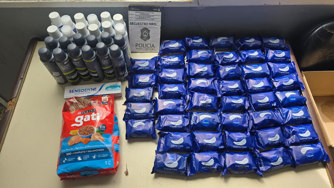 Pero la joya de la corona, y lo que convierte la escena en un misterio logístico, fue la inclusión de una bolsa de alimento para gatos. Esto ha dejado a los investigadores preguntándose: ¿Era un botín para el aseo personal o el inicio de un plan para un spa felino clandestino? La mercadería, por supuesto, fue incautada en su totalidad, frustrando el sueño del olor a flores y lavanda sin pagar.