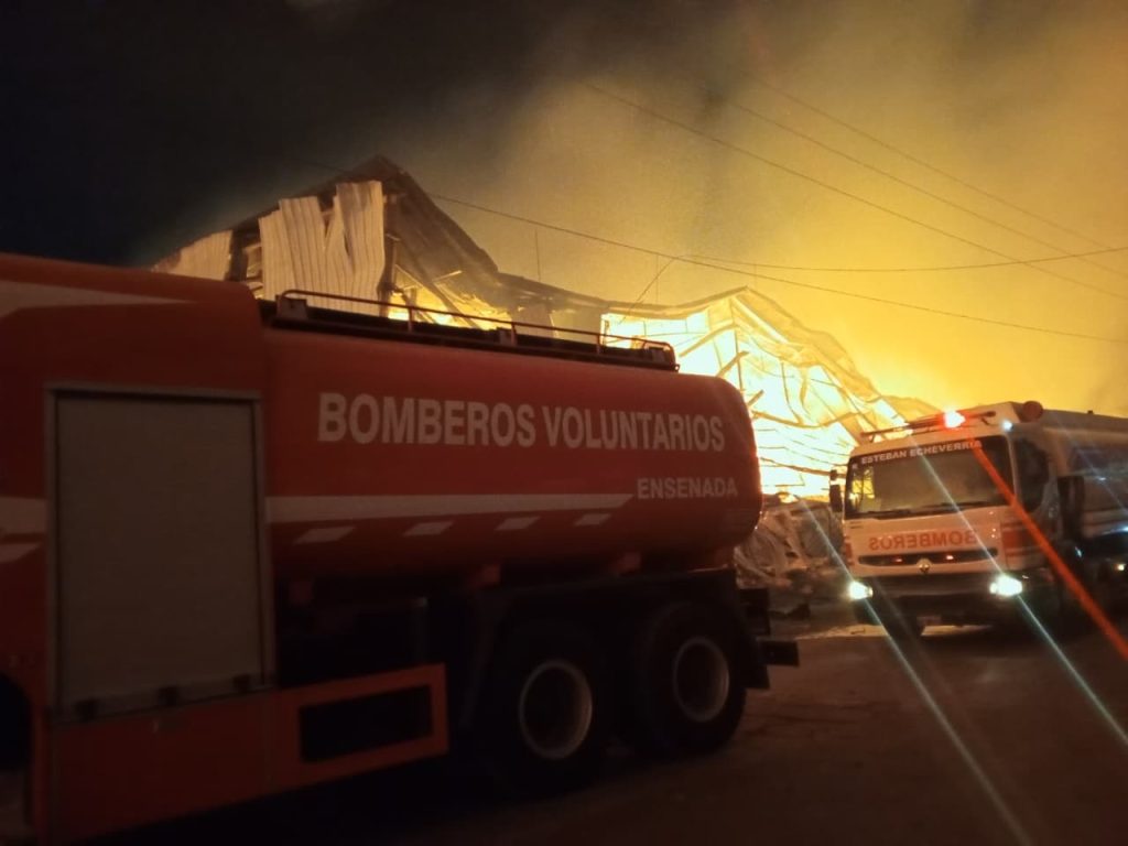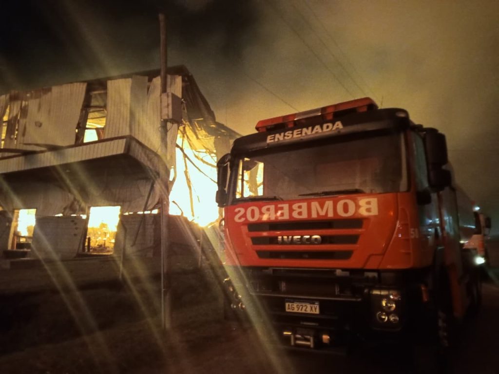 En horas de la madrugada del 15 de noviembre, los Bomberos Voluntarios de Ensenada fueron convocados por la Regional Operativa N°3 para brindar apoyo en un incendio de magnitud registrado en el Parque Industrial de Ezeiza.