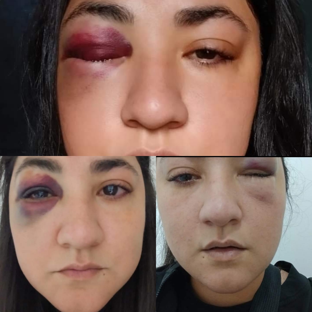 Luego de derribar la puerta a golpes, el hombre comenzó a propinarle golpes de puño y un cabezazo que la dejó aturdida. La violencia solo se detuvo cuando una vecina comenzó a filmar la escena; en ese momento, el agresor, según el relato de la mujer, habría comenzado a llorar, intentando responsabilizar a la mujer por su propia conducta violenta.