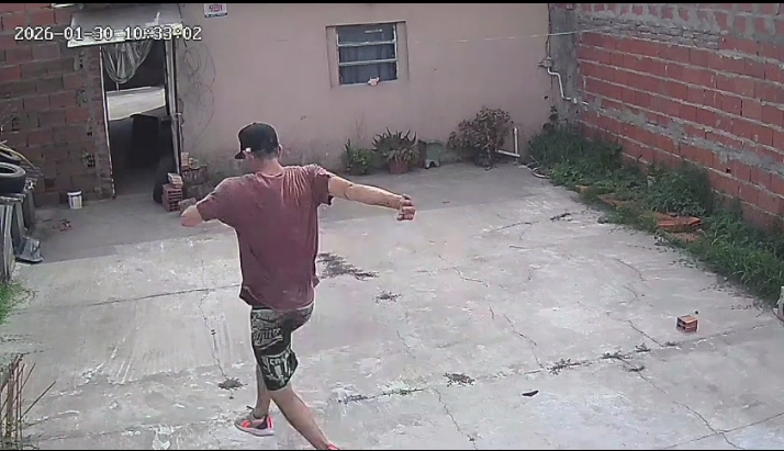 El registro fílmico de las 10:32 de la mañana muestra al sospechoso, quien vestía una remera color bordó, pantalones cortos y gorra, atravesando el patio de la finca. Pocos segundos después, se lo observa retirarse del domicilio cargando dos valijas con distintos elementos de valor que logró sustraer del interior. La dueña de la casa descubrió el ilícito recién al regresar de su trabajo y constatar el desorden y los faltantes.